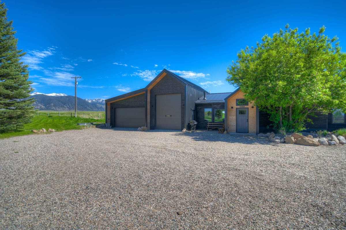 Kick back and relax in this calm, stylish space. Spacious, 1200 square feet, freestanding studio building that has been converted into the perfect, good-energy living space! It is set on a private 5-acre property, 10 mins from downtown Bozeman. Perfect for a couple or a single person. Lots of love and attention to detail went into designing the inside. Clean, open, modern style. From the sliding glass doors onto your private outdoor patio, you have views of the mountains.