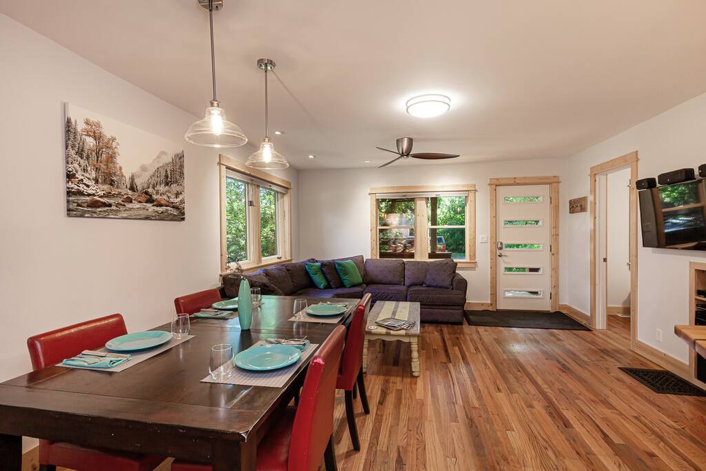 This brand new apartment in the new sought after area of Bozeman that has spectacular views of the Bridger Mountains and Spanish Peaks. Enjoy the creek with a walking and biking trail out the backyard. Just steps from The Gallatin County Regional Park and Dinosaur Park. This is the perfect jumping off point for all your Bozeman adventures. The apartment comes fully furnished with every amenity you want for your stay!