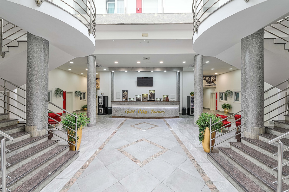 Smještaj Split City Rooms se nalazi u samom srcu grada Splita. Krase ga 36 moderno uređenih soba kategoriziranih sa 3 zvjedzice. Sobe imaju prozore koji gledaju na unutrašnjost objekta. Gostima se nudi usluga besplatnog WI FI-a i recepcija 24 h/dan. U predvorju ćete pronaći automat za piće i tople napitke. Nudimo uslugu skladištenja prtljage i uslugu prijevoza. Ljubazno osoblje će vas dočekati i uljepšati boravak u našem objektu. Objekt je udaljen minutu hoda od Dioklecijanove palače i mora.