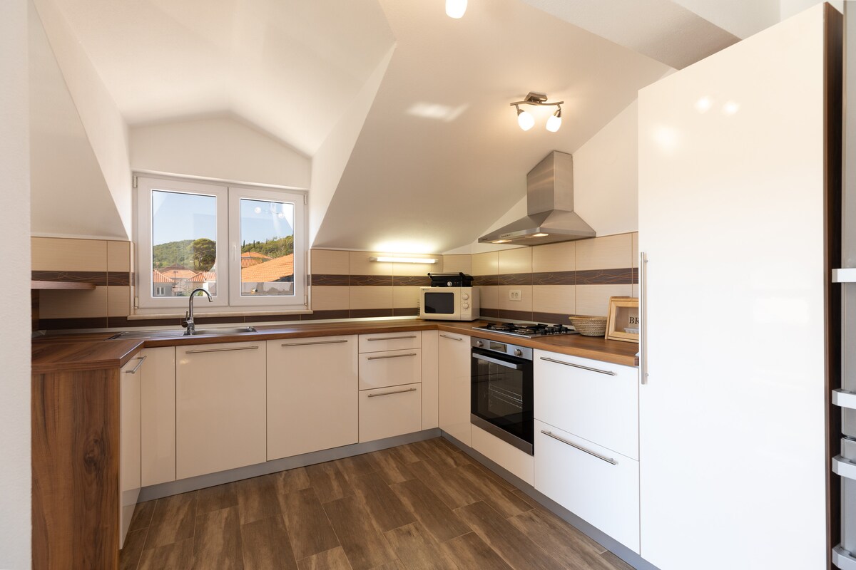 A brand-new, beautiful, bright apartment with a breathtaking view on the top floor of an apartment building in Makarska awaits you. Here you can enjoy the advantages of this vibrating beach town in summer or this cool laid back town with plenty of coffee bars and restaurants in winter, without sacrificing your comfort. ou will find a modern and luxury apartment with elevator and two parking lots for your cars. The high-quality kitchen is fully equipped, with everything you need.