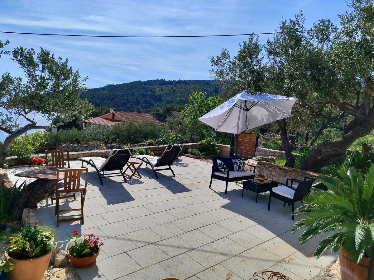 Relax in a pleasant holiday house "Olive garden" only 50m from the sea! This is an alone standing house in 400 m2 lot and you would be there alone, no other tourists and no owners. It is located on the cape of a small, peaceful bay, Donja Krušica, surrounded by olive trees and sea. This small cozy house is with accompanying facilities such as a terrace, garden, parking area, secured play area for children and pets, barbecue, and all that with a beautiful panoramic view of the sea and Split.