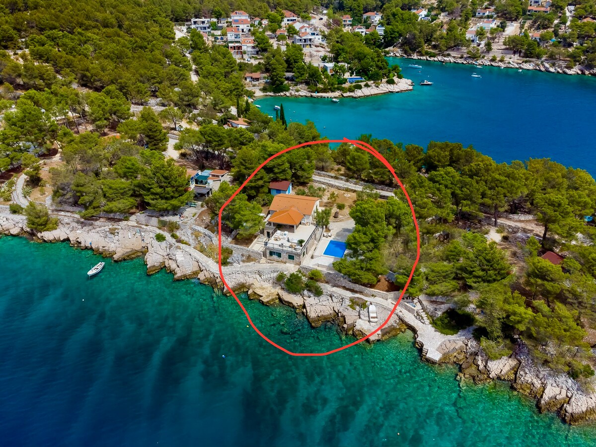 Ova kamena kuća za odmor, na otoku Braču smjestila se u prekrasnoj uvali na zemljištu površine 10 000 m2. Okružena maslinama i borovima sastoji se od dva odvojena objekta koji su povezani međusobno velikom terasom. Pruža uživanje u miru i tišini daleko od gužve i gradske buke. Idealna za miran obiteljski odmor ili opušteno druženje s prijateljima do kasnih nočnih sati. Želimo naglasiti da u potpunosti koristimo obnovljive izvore solarne energije.