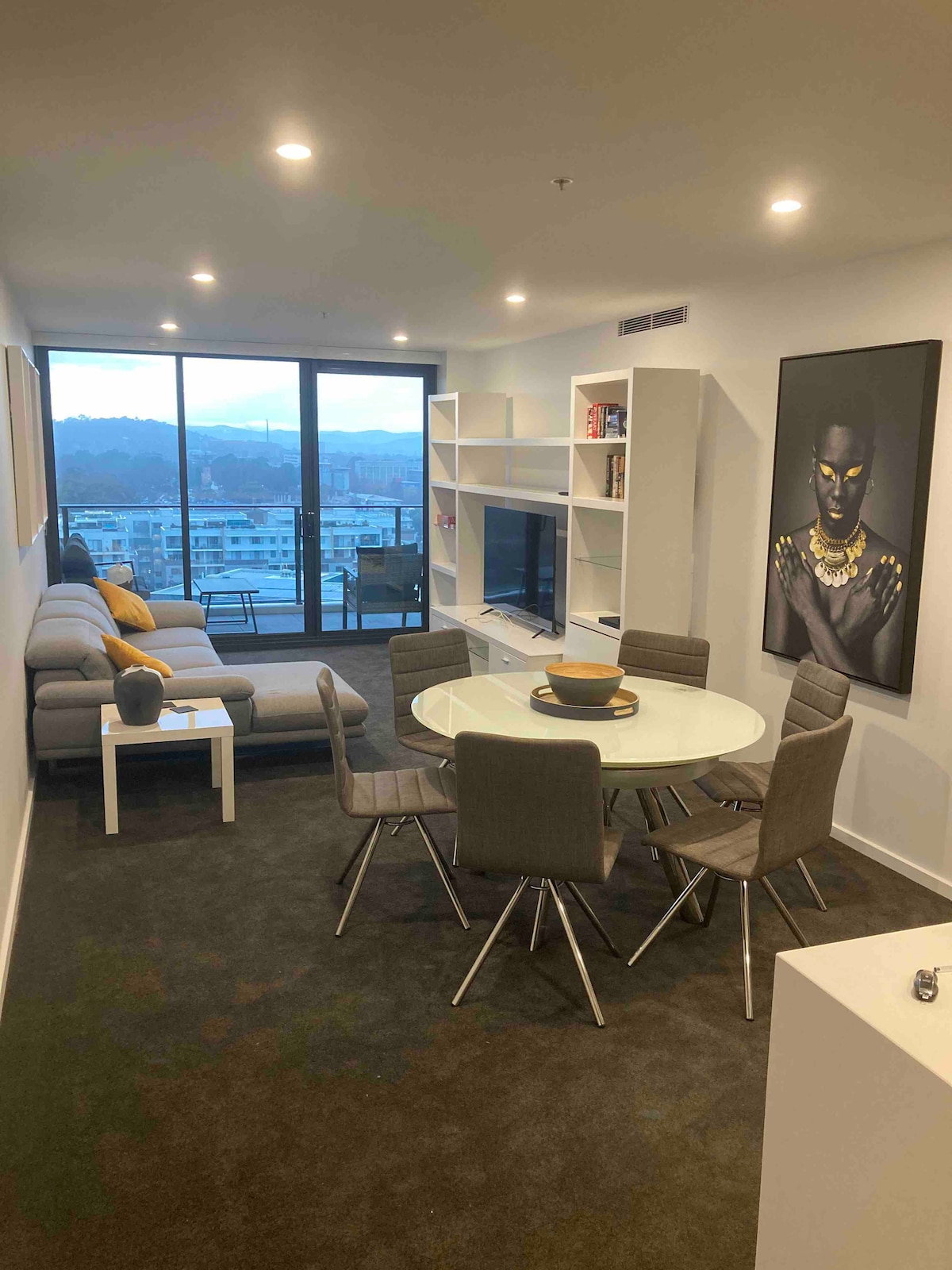 *Book today to unveil the beauty of this lovely apartment :) Key highlight: - One Complementary Secured Parking - Rooftop BBQ area with 180° Mountain View (Building Amenities) - 2 mins walk to Canberra Center - 5 mins walk to Lonsdale St (Place for good restaurants n pubs) - 6 mins drive/17 mins walk to the ANU - 8 mins drive to Canberra airport - 9 mins drive to Mount Ainslie Lookout Our stylish apartment has blackout curtain and quality mattress to comfort your stay.
