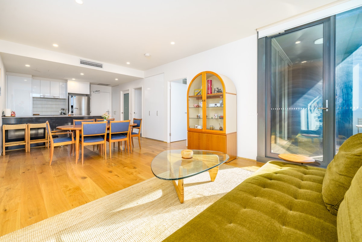 Centrally located, this beautifully appointed north-facing corner apartment is filled with natural light and homely touches. Relax with a coffee and the morning paper in the delightful winter garden, or curl up with a blanket on the soft, pillow-filled couch for a binge (that artwork is a TV in disguise). With all of Canberra’s best restaurants, cafes and shops right downstairs, this luxury one-bedroom apartment ticks all the boxes for a great Canberra escape.