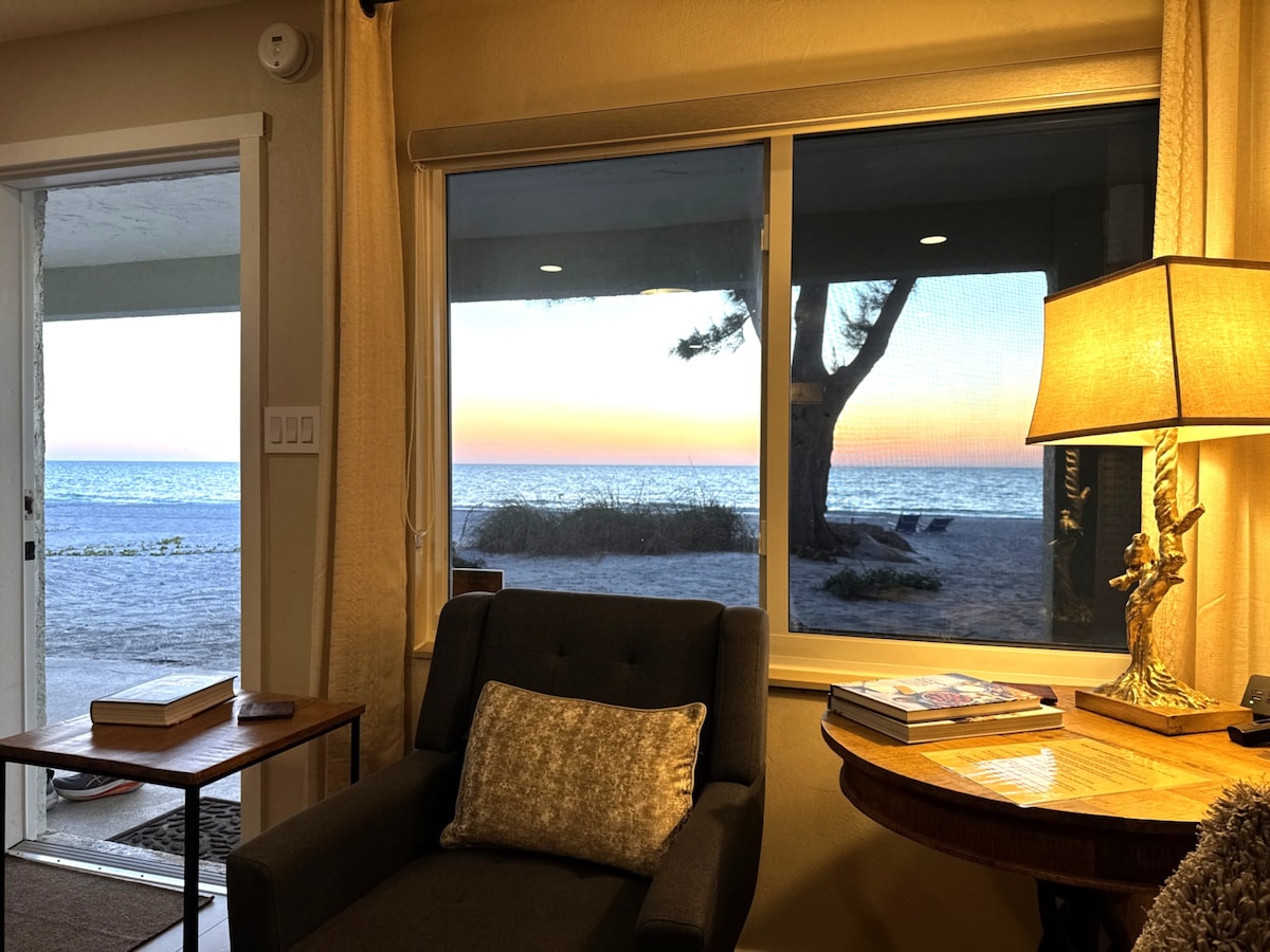 This sublime oceanfront studio is directly on the pristine white sands and serene blue waters of the Gulf of Mexico in Longboat Key, Florida! On the second floor, overlooking the heated pool and ocean, this dreamy studio condo is optimal for sunset viewing from a private lanai. Take a 30-second walk to the pool and secluded beach. Enjoy a relaxing vacation at our peaceful condo at The Beach at Longboat Key Resort! To see all four of our listings, click on my Host photo and scroll down...!