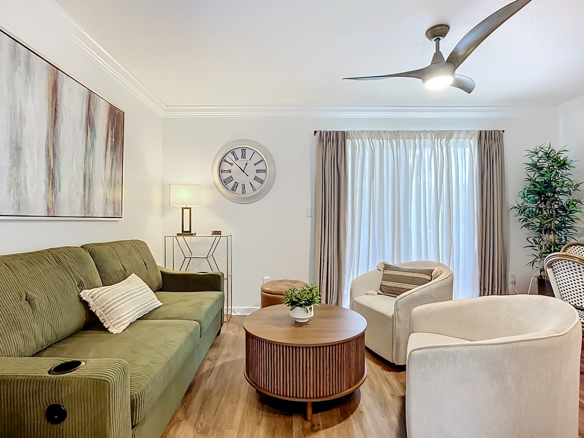 ⚓️🦩Welcome to the Coastal Flamingo! Your nautical getaway that combines style, fun, and the serene beauty of the Gulf Coast. This cozy, vibrant themed condo is the perfect destination for your next Beach vacation. Walking distance to Palma Sola Beach Causeway, where you can enjoy sun-bathing, horseback riding, jet skiing, and fishing! 5 mins or less from the Gulf of Mexico and powdery white sand beaches of Anna Maria Island! Kick back and relax in this coastal escape!