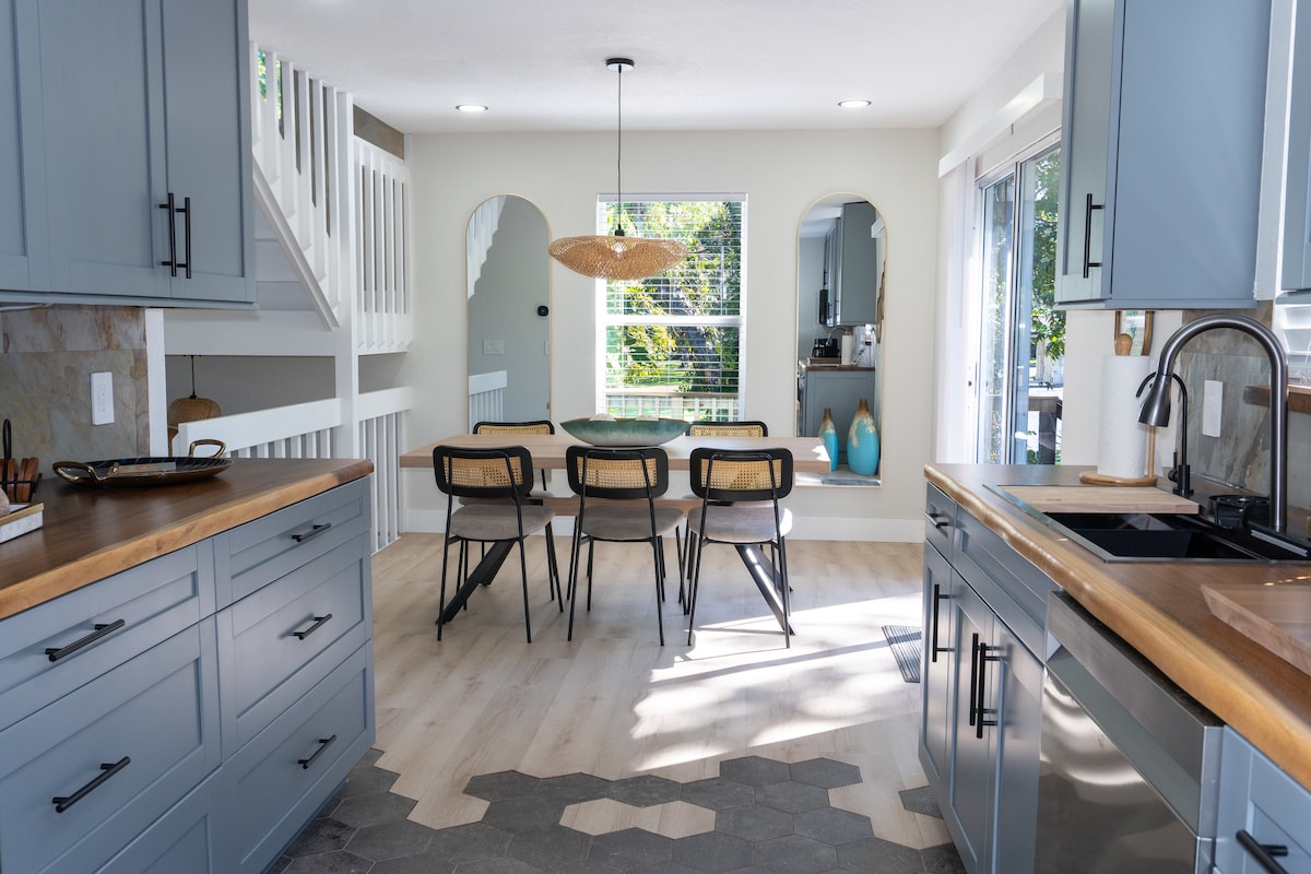 Enjoy your little slice of paradise at the beautifully decorated Orange Oasis! 3 bedrooms & 2 baths, plus a daybed with trundle. Heated Pool. High speed wifi & 4 TV's all with Hulu, Apple TV, Disney+, & ESPN. Vaulted ceiling, rainfall walk-in shower, washer & dryer, large fenced backyard, pool, garage parking, Weber grill, & a quiet safe neighborhood. The home comes fully stocked with Ziploc bags, cooking/kitchen essentials, coffee, beach essentials, & outdoor/indoor games.