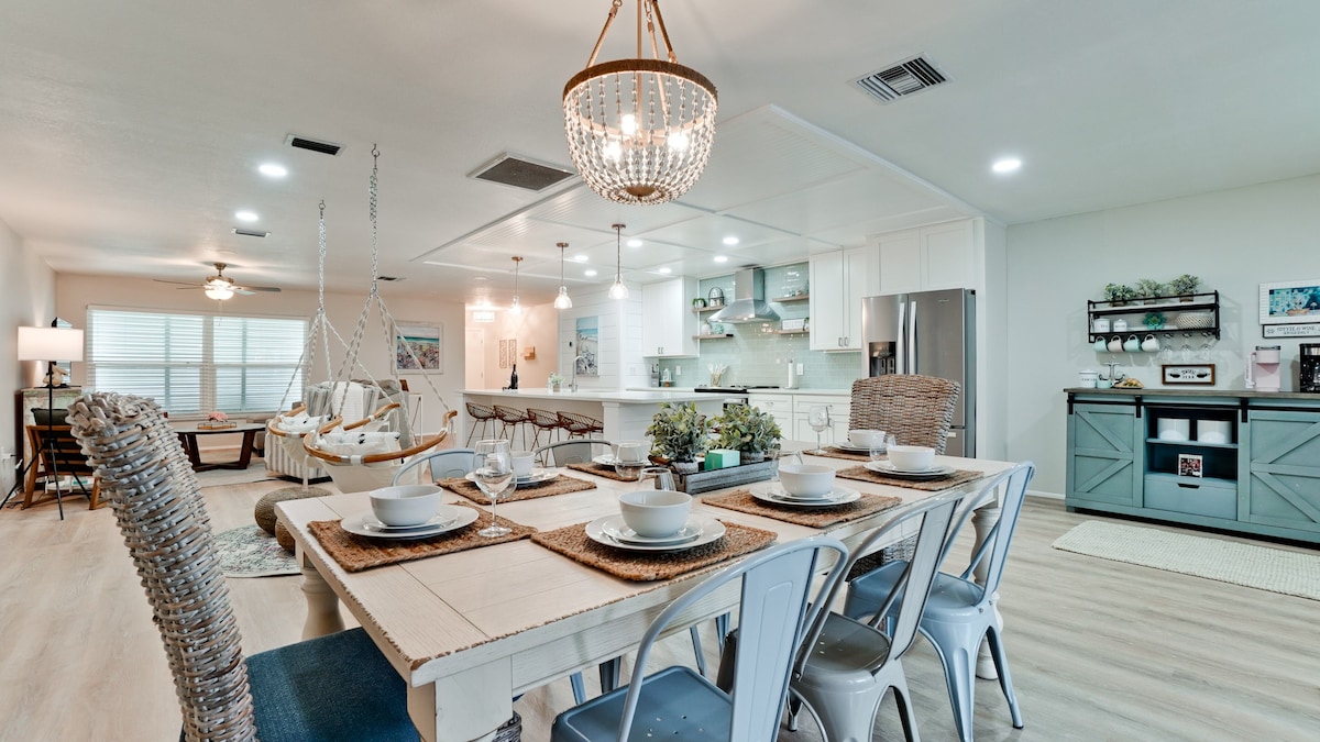 Enjoy Florida sun in a stunning, newly renovated 4/2 pool home! We have provided almost everything we could think of including five 4k TVs w/ Netflix and cable, wifi, heated (optional) salt water pool w/ 7' privacy fencing, adult bikes, beach gear, Pack & Play, office, board games, relaxing lounge chairs, stocked kitchen, washer & dryer, garage parking, dog crate, all in a quiet and safe neighborhood. Oh, and of course it's just 5 miles to world renowned beaches.