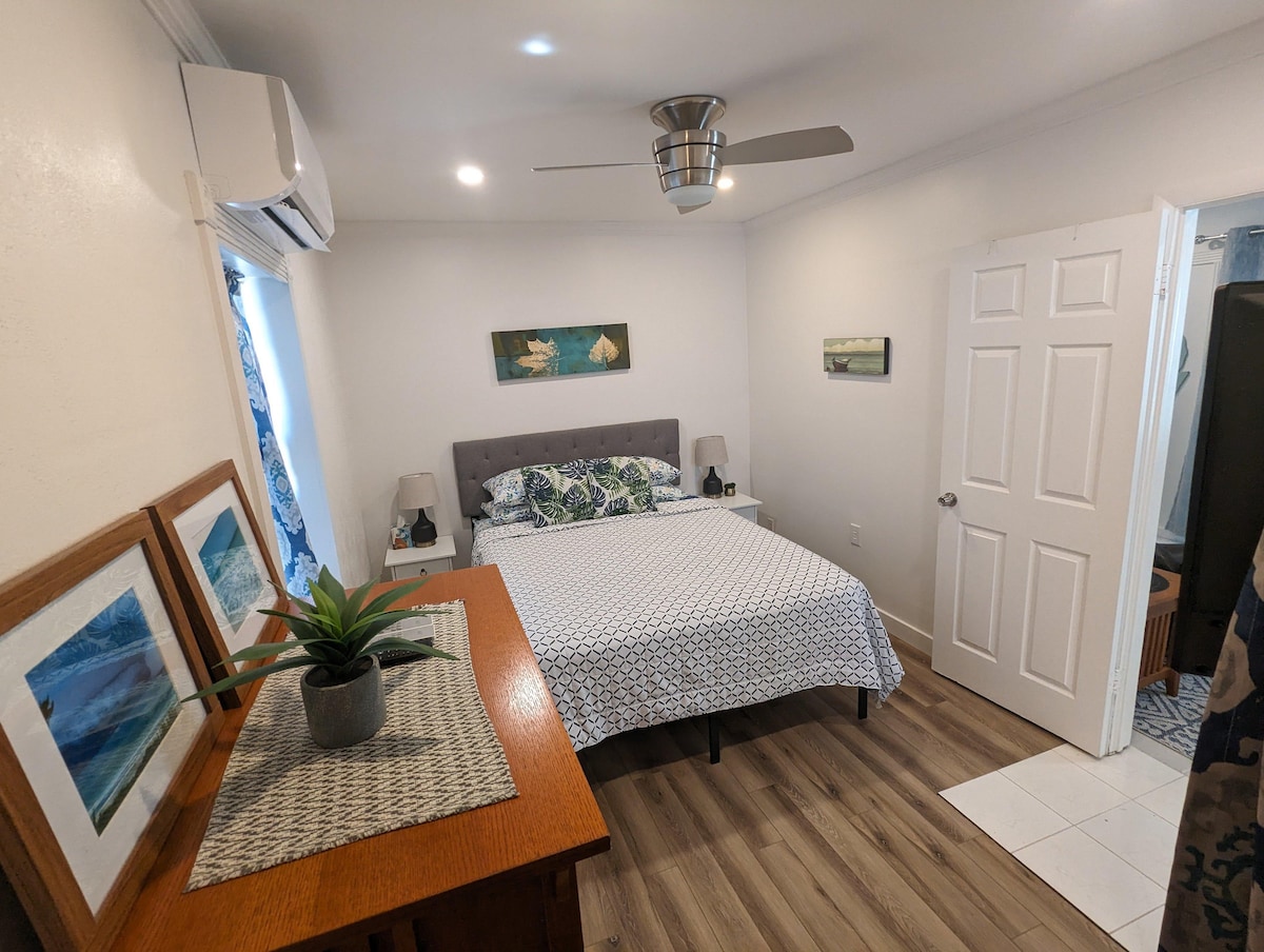 BEACH ACCESS IS STEPS FROM YOUR DOOR! A 30 second walk. 1 of 3 units in a private beachside villa tucked away on a peaceful street. A hidden gem away from busy condos. Wide beautiful beach goes for miles. Walk to many restaurants. Washer/dryer in unit. *Private patio. *Full sized kitchen. *Quiet ductless AC, *Free parking in front. *BEACH supplies provided. 1 bedroom super comfy queen bed, separate living room very comfortable pop-up sofa. 2 more units available; 1 bdm & 2 bdm.
