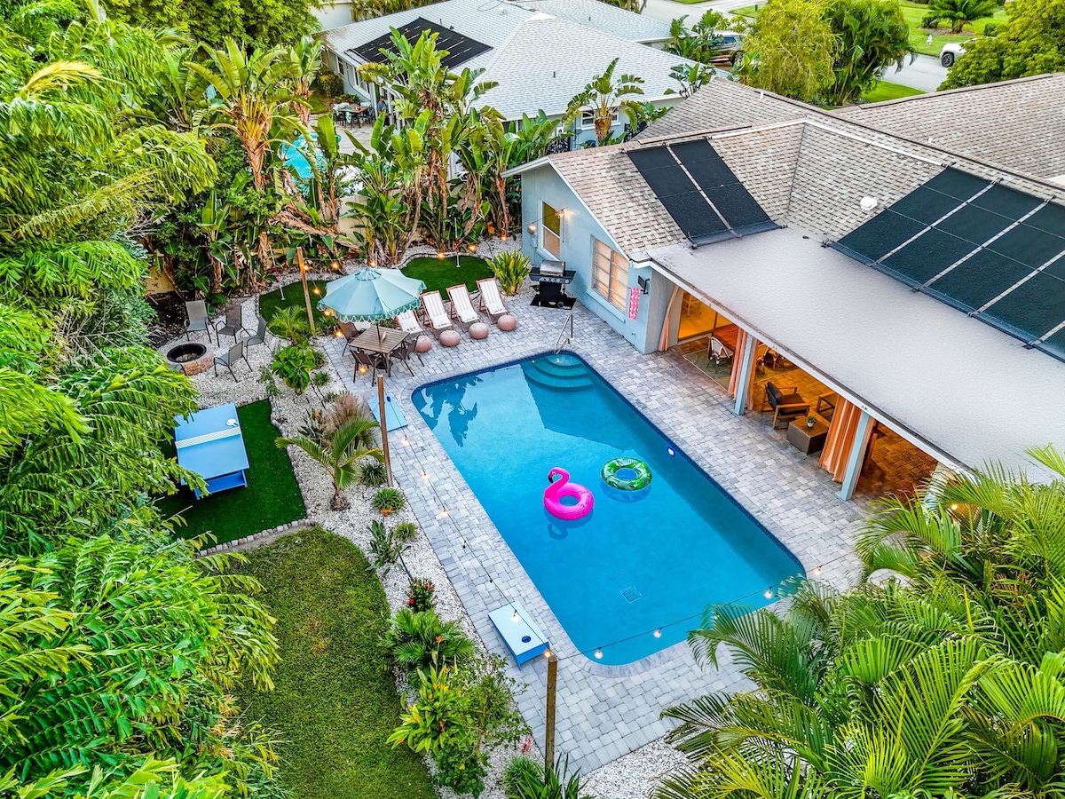Enjoy easy living in this updated tropical home! Your private screened lanai is perfect for seamless indoor/outdoor relaxing, with a heated pool and covered dining/lounge area with a 58" outdoor TV! The interior of the home is bright and open with cheerful coastal decor and plenty of room to spread out. We provide everything you need with a well-stocked kitchen, gas grill, game room, beach gear, towels, EV Charger! In a quiet neighborhood with quick access to AMI beaches IMG, parks, and trails!