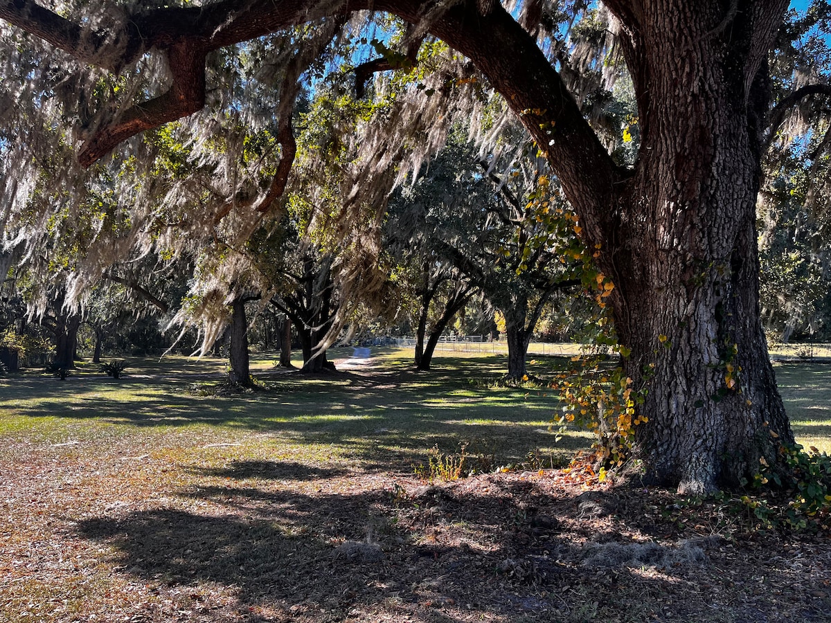 Nature at its best, peaceful atmosphere; you can sit on the front porch and hear the church bells. Bring your horses for a unique riding experience. First class accommodations for your horses. Escape to warmer weather and enjoy the beauty of Florida. This working farm has a lot to offer. There are 250 acres of wooded trails to ride your horses. We centrally located to local attractions. The world equestrian center is less than 2 hours away, Jacksonville Beach is an hour away. 2 full rv sites.