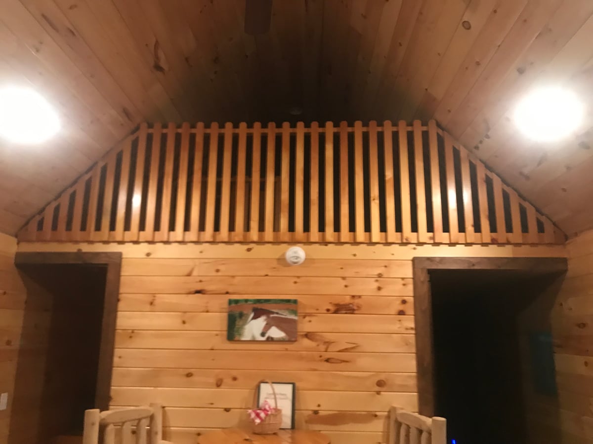 Make some memories at this unique and family friendly place. Our one bedroom tiny/home cabin is located amongst 2 other cabins on our small farm where you will be able to peacefully watch the farm animals, relax at the pond, or just keep to yourself. We are located approximately 7 miles from town where you can shop or go out to eat. If you prefer to do your own cooking you will have a full kitchen to make what you please. The loveseat pulls out to be able to bring an extra person.