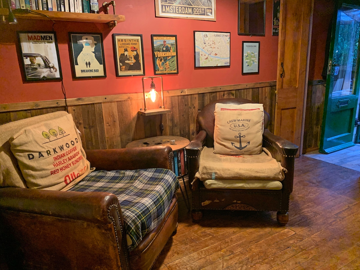 This memorable place is anything but ordinary. Compact and a little bit different this self contained mini house has all you need for a short stay. The mezzanine bedroom has a double bed with a double sofa bed also available. Ideal for couples with or without older children, friends passing through, or people wanting close access to Leeds/Bradford airport. Set close to the woods, canal and river for nice walks or bike rides.