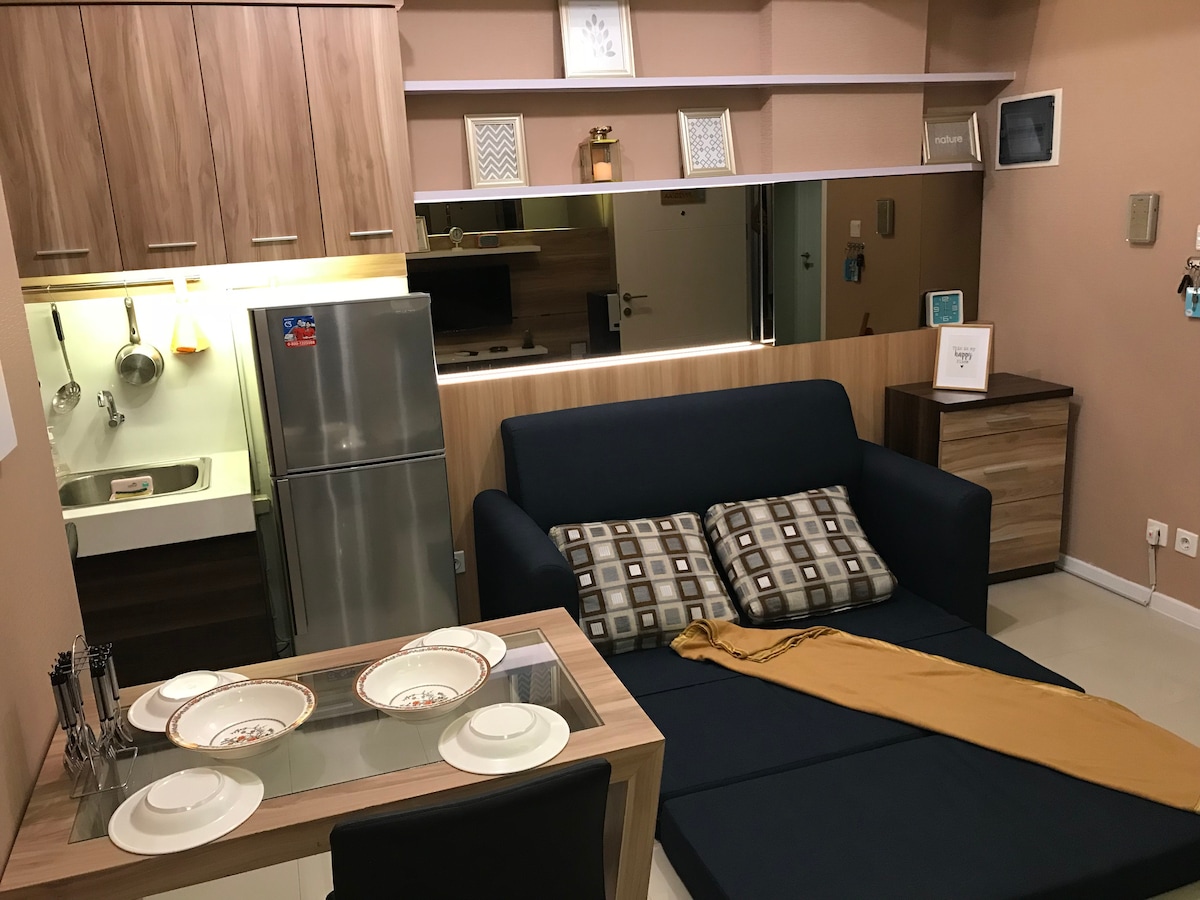 Premium Studio Apartment DAGO SUITES Bandung, Jalan Sangkuriang no 13 Bandung. Suitable for 3 people. ALL FURNITURE MADE BY METRIC 100% COMFORT (Wardrobe, Kitchen, Furniture). Water Heater Facility, Wifi, AC, Stove, TV channels, Refrigerator, Wardrobe, Balcony etc. You can ask for an extra bed (not springbed) with additional cost IDR 150.000 A new apartment with a good mountain view. Located in Central of Bandung famous street Dago.