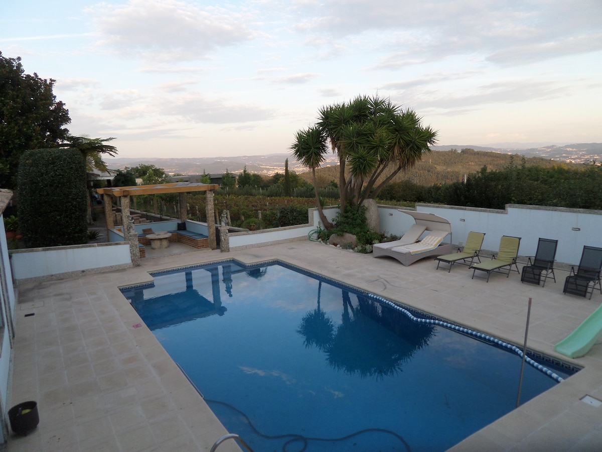 Beautiful Pool House, set in the mountains, close to Braga and Guimarães. 2 bedrooms, 2 bathrooms (the 2nd on a terrace below the pool), kitchen, sitting/dining room with bi-fold doors out to pool. Satellite TV in the living room and kitchen. Netflix. Wood burner, Central Heating. Large salt-water tiled pool, with solar shower. Stunning views. Pool illuminated at night. Fire pit in garden. Free wood. Private car park Welcoming snack on arrival. Kitchen well stocked. Good restaurants nearby.