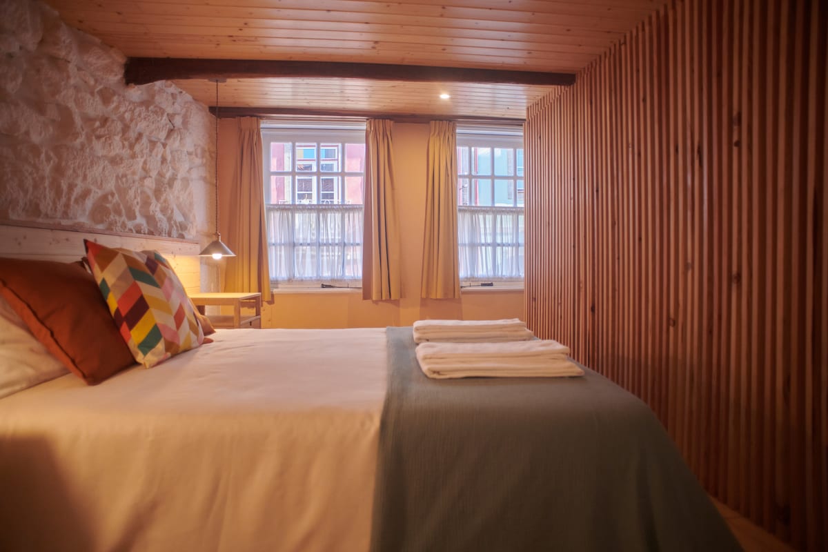Quarto Duplo Aconchegante no Coração da Cidade. Com cama de casal, casa de banho privativa, Wi-Fi, armário espaçoso, secretária ideal para trabalhar, secador de cabelo e chaleira elétrica para preparar as suas bebidas favoritas. Situado no 1º andar (acesso por escadas), este espaço combina conforto e localização privilegiada. Está rodeado de restaurantes, cultura, lazer e todas as experiências que a cidade tem para oferecer — tudo a poucos passos da porta.