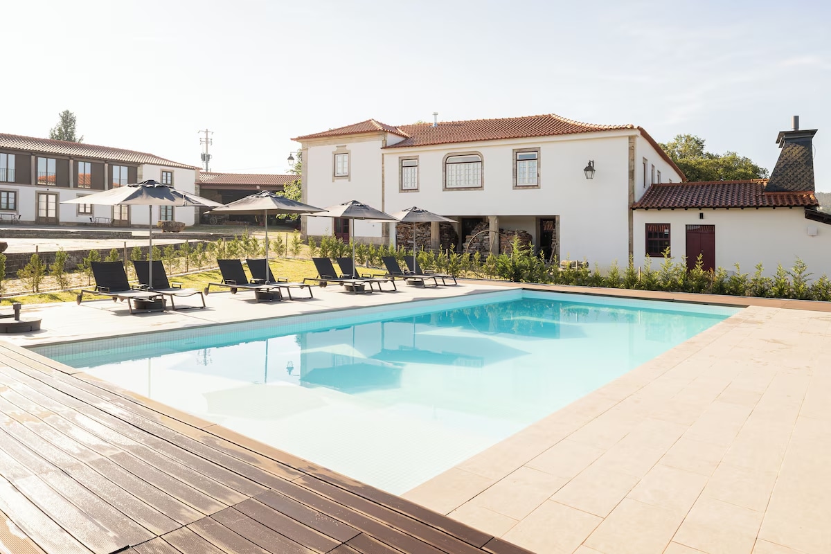 Escape to Minho, where rustic charm meets modern comfort. Minutes from Braga, visit Bom Jesus do Monte and Tibaes Monastery. Enjoy wine tastings, rural adventures, and nature in Gerês, or culture in Guimarães. Start the day with a hearty breakfast, then unwind by the pool or spa. Just 45 minutes from Porto Airport.
