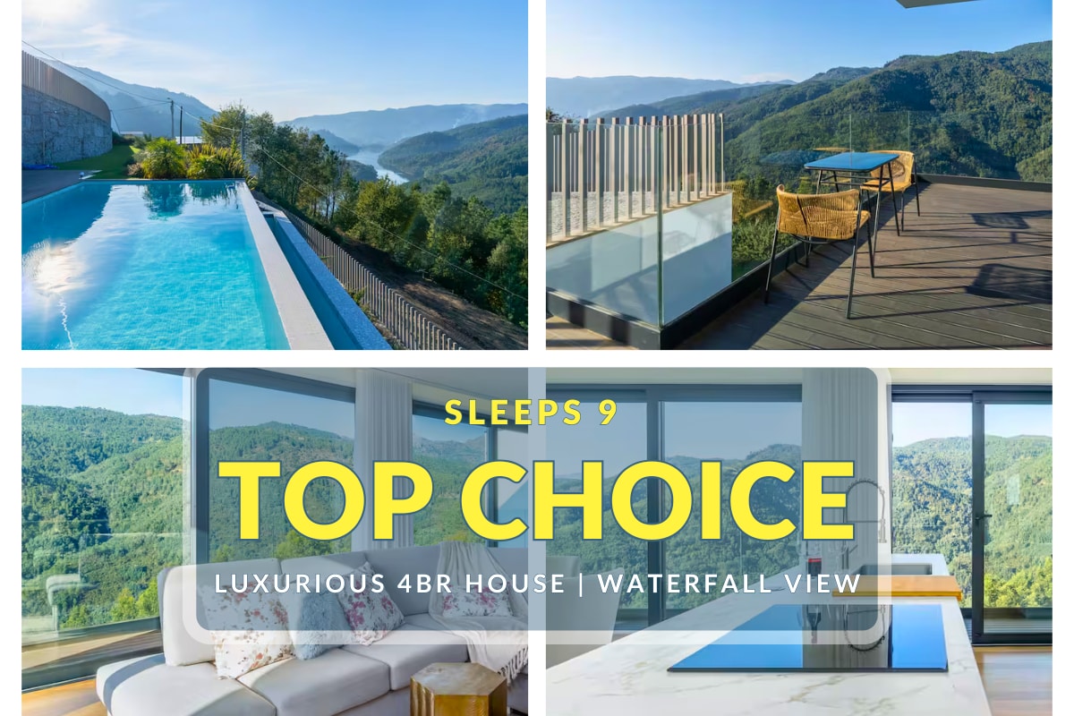 Welcome to your sanctuary in Gerês — a massive 4-bedroom villa on 2 floors. Our villa is designed with unforgettable natural beauty. Wake up to panoramic views of the waterfall in every room Cook with love in the fully equipped 2 kitchens, with modern appliances, counter space, and everything you need. 2 beautiful living rooms, 75-in Smart TV + 55-in OLED, views of the waterfall from every angle. It’s a rare and peaceful setting you won’t find anywhere else in Portugal. Private Pool and Jacuzzi
