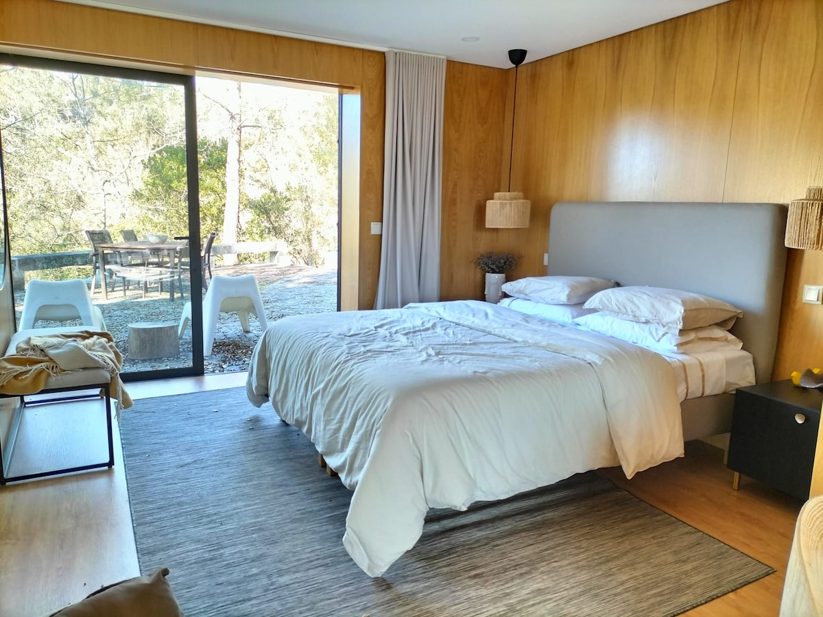 Encantadora casinha de madeira no coração da natureza, perfeita para escapar à rotina. Rústica, sustentável e luxuosa, com detalhes equestres. Sala e quarto com grandes janelas e vista para os cavalos, ar condicionado, cozinha equipada e casa de banho rústica. Varanda privada com jacuzzi. TV e Wi-Fi disponível. Acesso à Quinta por caminho no bosque, com estacionamento a poucos passos. Ideal para relaxar e explorar trilhos a pé ou a cavalo. Uma experiência única e inesquecível espera por si!