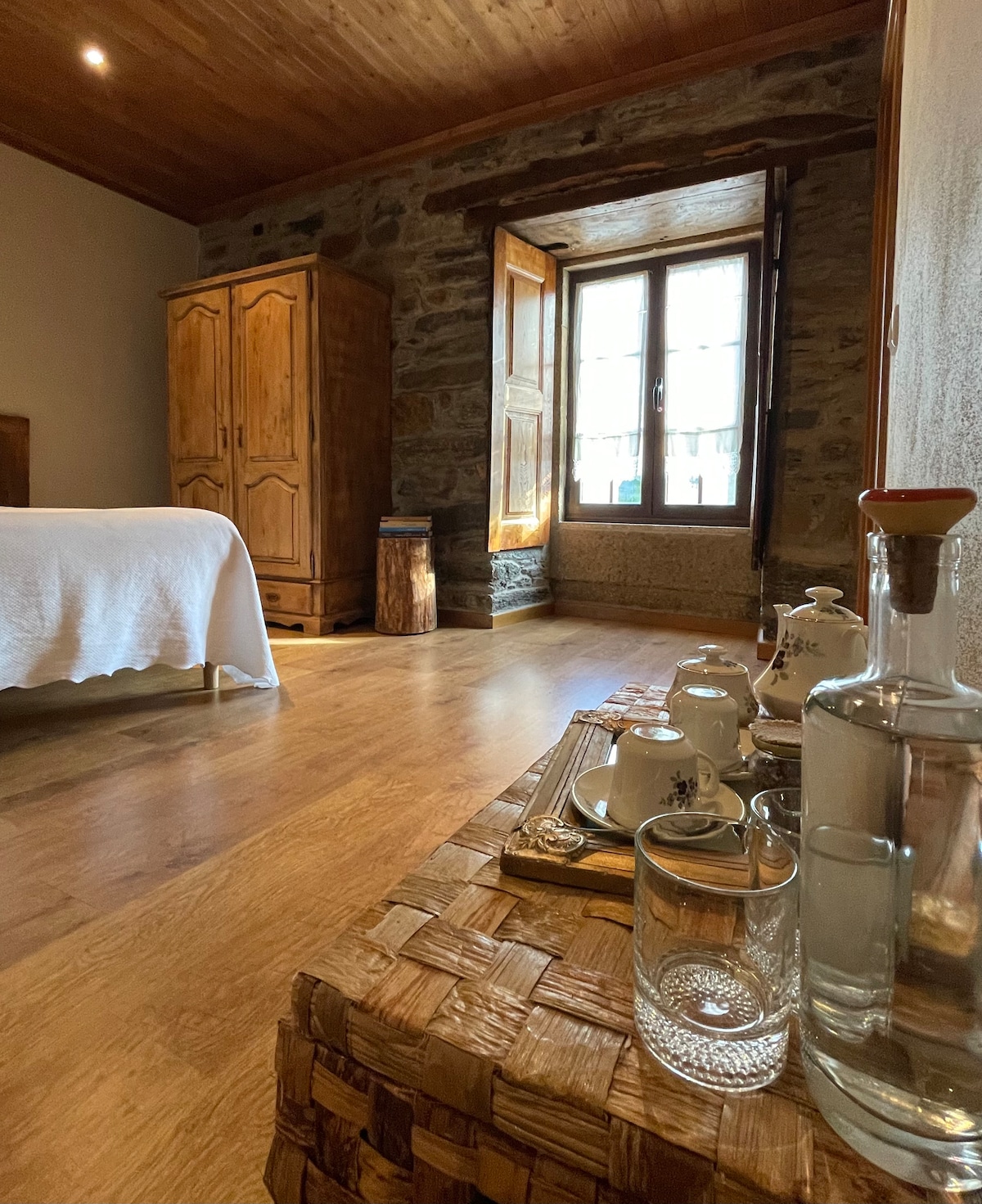 A restored house with all the comforts you need for a wonderful retreat and/or get-together with family and friends. This house is located in an old abandoned village near the river with a beautiful little beach. If you enjoy being in contact with nature, this is the ideal place; you can find otters, many varieties of birds, etc. The house has two bedrooms, a bathroom, a fully equipped kitchen, and air conditioning. The pool is shared with another house. Meals are available upon request.