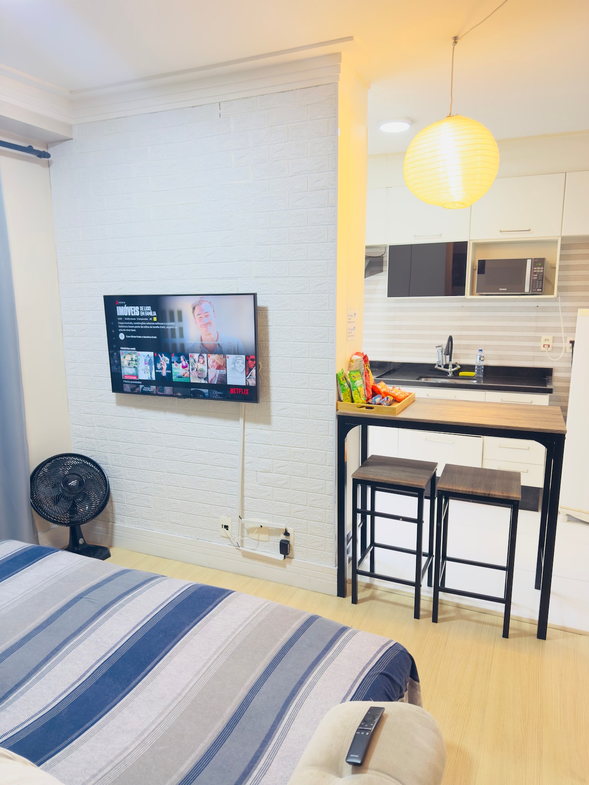 Esse apartamento é ideal para quem busca um studio perfeito para se hospedar. Com todas as comodidades que você precisa, ele está localizado a poucos metros de um shopping e ao lado de um mercado. A combinação perfeita de conforto e conveniência!