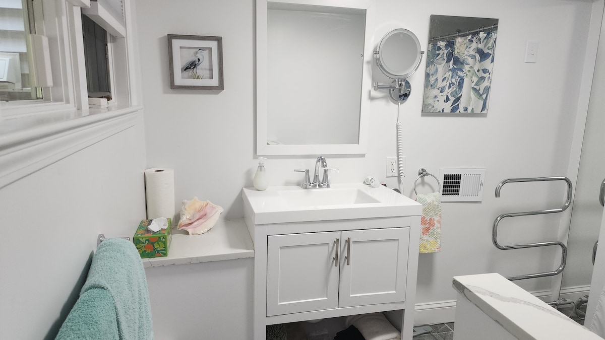 Welcome to your getaway home! You are sure to enjoy a wonderful experience in this newly renovated Guesthouse Studio, situated in Weymouth Landing. • Just a 5-minute walk to the Commuter Rail station for easy access to Boston and beyond. • Explore local stores, restaurants, and bars, all within walking distance. • Only 10 minutes away from South Shore Hospital. • A short 12-mile drive to Downtown Boston. Perfect for couples, small families, groups, business stays, and long-term rentals.