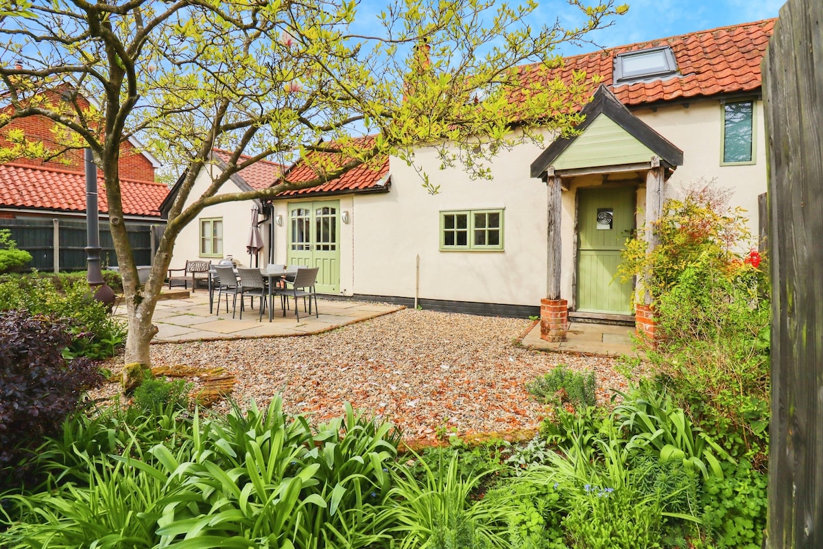 Cocketts Holiday Cottage - a delightful 16th century pink country cottage tucked away on a quiet lane in the heart of rural Suffolk. Cosy, comfortable and tranquil, featuring beams, logburning stove and large garden with orchard, games room and children's playhouse. Feed the owner's pygmy goats and look for eggs from the chickens. Thoughtfully equipped with all you'll need for a relaxing 'get-away-from-it-all' break at any time of year. Interesting places to visit and easy access to the coast.