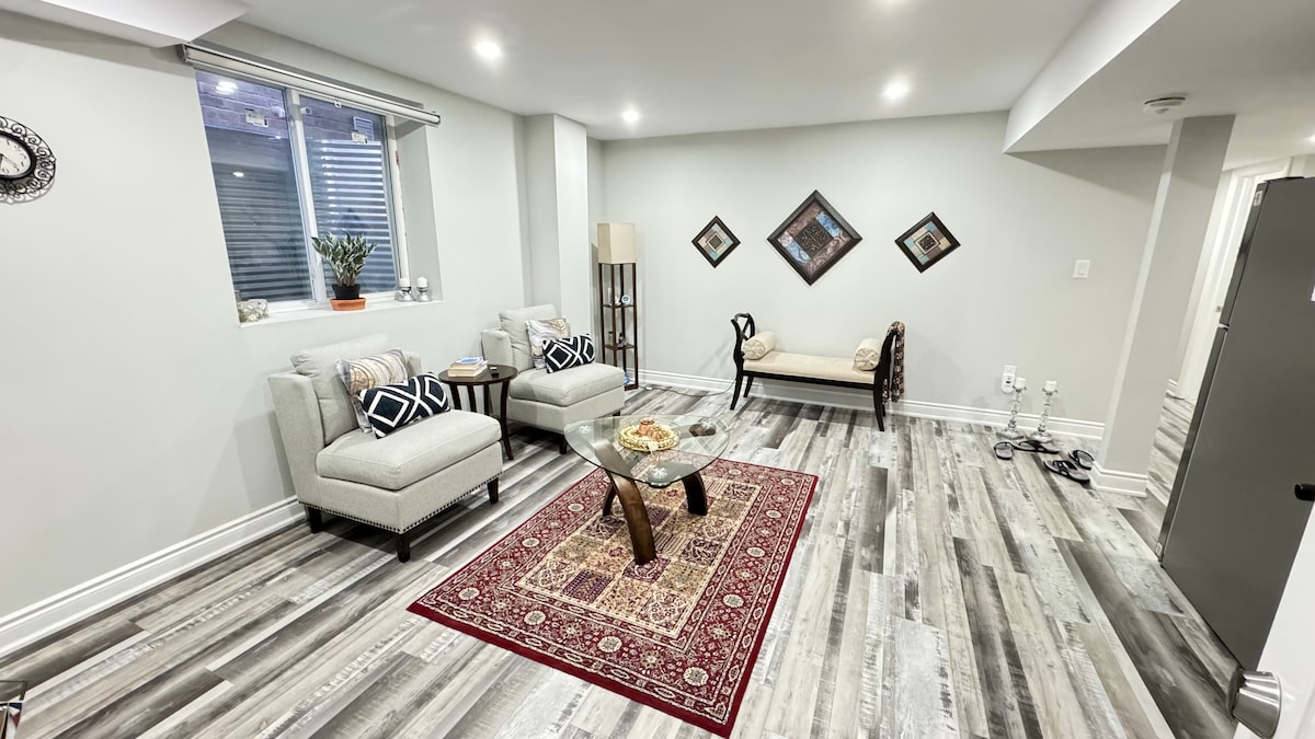 •19 mins to Toronto Pearson Airport •Easy access to highways & public transit •Driveway parking for 2 vehicles A warm, cottage inspired lower-level in a home hosted with care minutes from Toronto Airport, whether you’re here for a short stop or a longer stay, I hope the space feels thoughtful and easy to live in for those we’ll be fortunate enough to host. Please note: Availability tends to fill quickly despite having sent inquiries first.We recommend securing your dates while available.