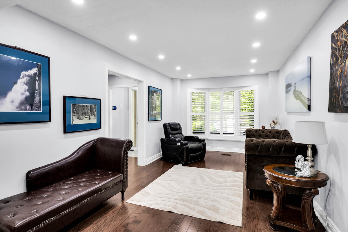 Forget your worries in this spacious, serene and unique house! Large backyard with a Swim Spa to enjoy! Backyard filled with fire places! 6 Bedroom, 7 beds, 4 full baths, 4 offices, 3 family rooms, 9 TV, equipped kitchen, patio, board games, BBQ grill, fire place, Tesla charger. Quiet yet central from downtown Oakville, highways, groceries, shopping, bars, restaurants, cafe's and much more! Always professionally cleaned. For elderly guests a bedroom and full bath is on ground floor.