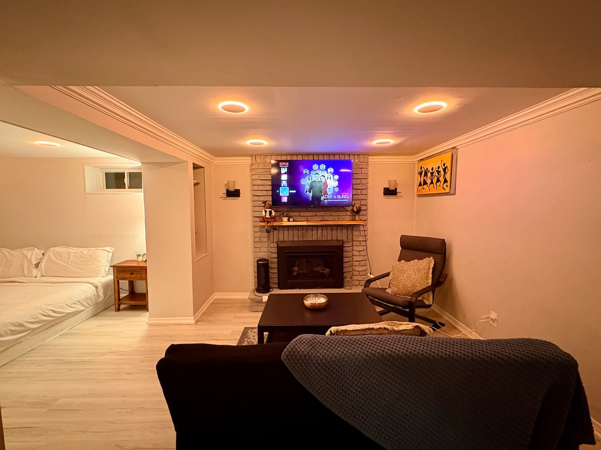 Welcome to the luxury and cozy redefined basement. This exquisite space is designed to elevate your lifestyle and provide unmatched comfort and style. Less than a minute walk to bus stop, 10 minutes to go station and bus terminal, 5 minutes plaza includes; banks, supermarkets, dollar store, 5 minutes to Indian grocery store, 10 min to Walmart, 30 minutes to Pearson Airport. 1 queen bed Sleep 2 Peaceful space, not meant for parties or events.