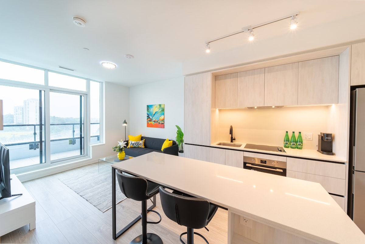 Modern 1-bedroom condo with stunning panoramic lake views from the 25th floor. Enjoy a stylish, relaxing stay just 10 minutes from downtown Toronto and Pearson Airport. Great location for visitors attending concerts or sports events in Toronto ! Features include a fully equipped kitchen, high-speed Wi-Fi, king bed, balcony, and more. Please note: second bedroom is locked and not for guest use. Perfect for couples or solo travelers seeking comfort, luxury, and convenience.