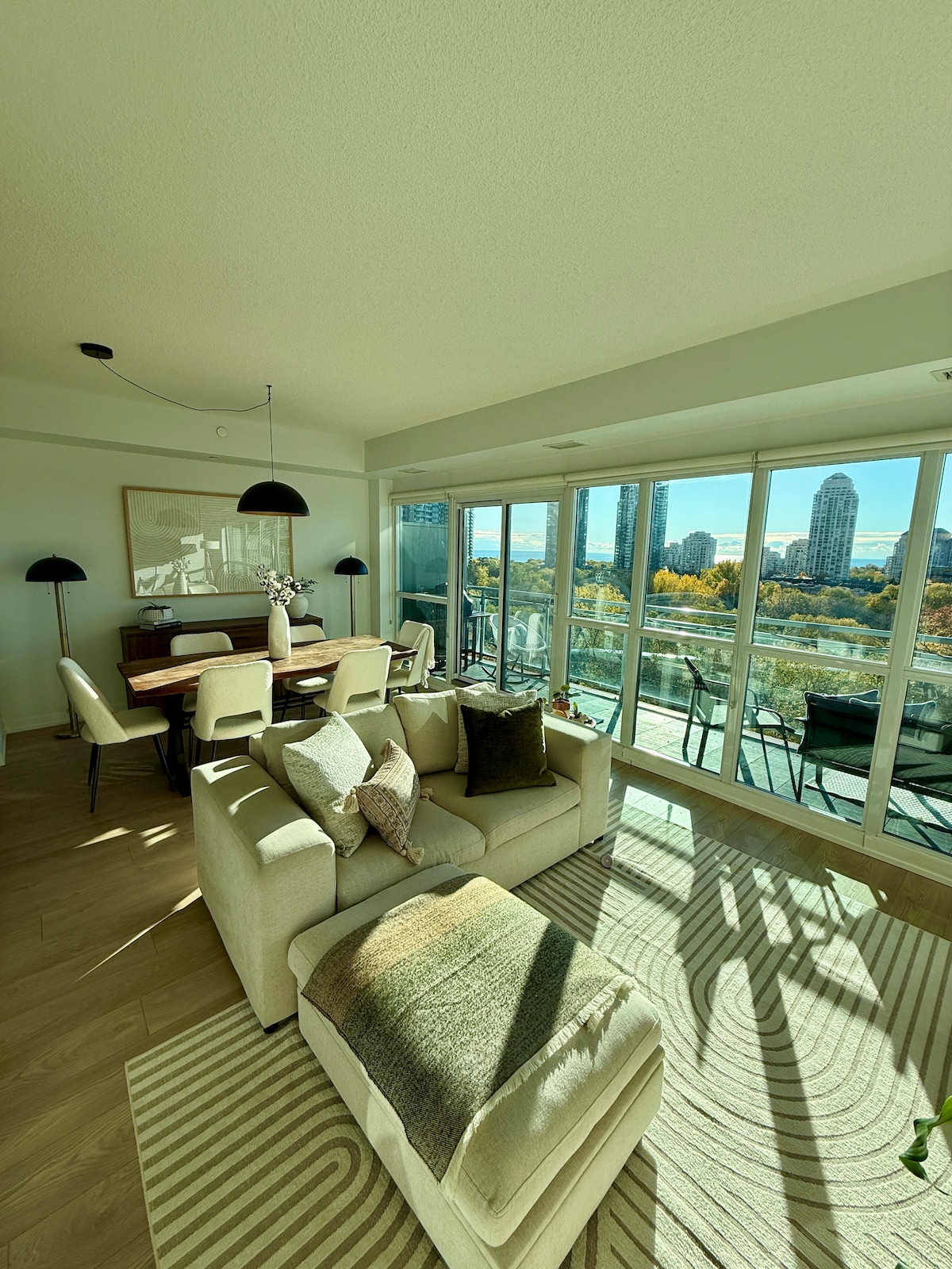 Welcome to our modern & luxurious corner penthouse! Stylishly designed with lush greenery and upscale touches, this bright space offers comfort, elegance, and a relaxed tropical vibe. Take in stunning panoramic city views and unwind with premium amenities including an outdoor pool, hot tub, and steam room sauna. Just a 15-min drive to downtown. Public transit at the doorstep. 10-min drive to Rogers Stadium. Perfect for discerning guests seeking an elevated stay in Toronto’s vibrant urban core