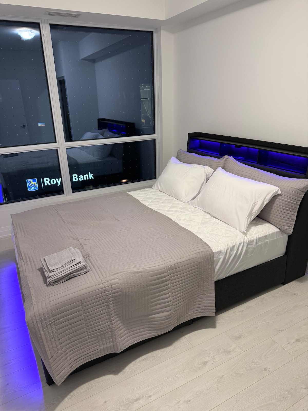 1 Bed +1 Den apartment in the Entertainment District, A++ location! - Internet speed maxed out at 500 MB/s - Free designated garage parking spot (6' 6" in height, 8' 10" width) - Starbucks, grocery stores downstairs, and surrounded by the best restaurants in the city. - Steps away from King West nightlife, TIFF, CN tower, Chinatown - Full coffee & espresso station - Kingsdown premium mattress - Bidet toilet with hygienic automatic cleaning feature