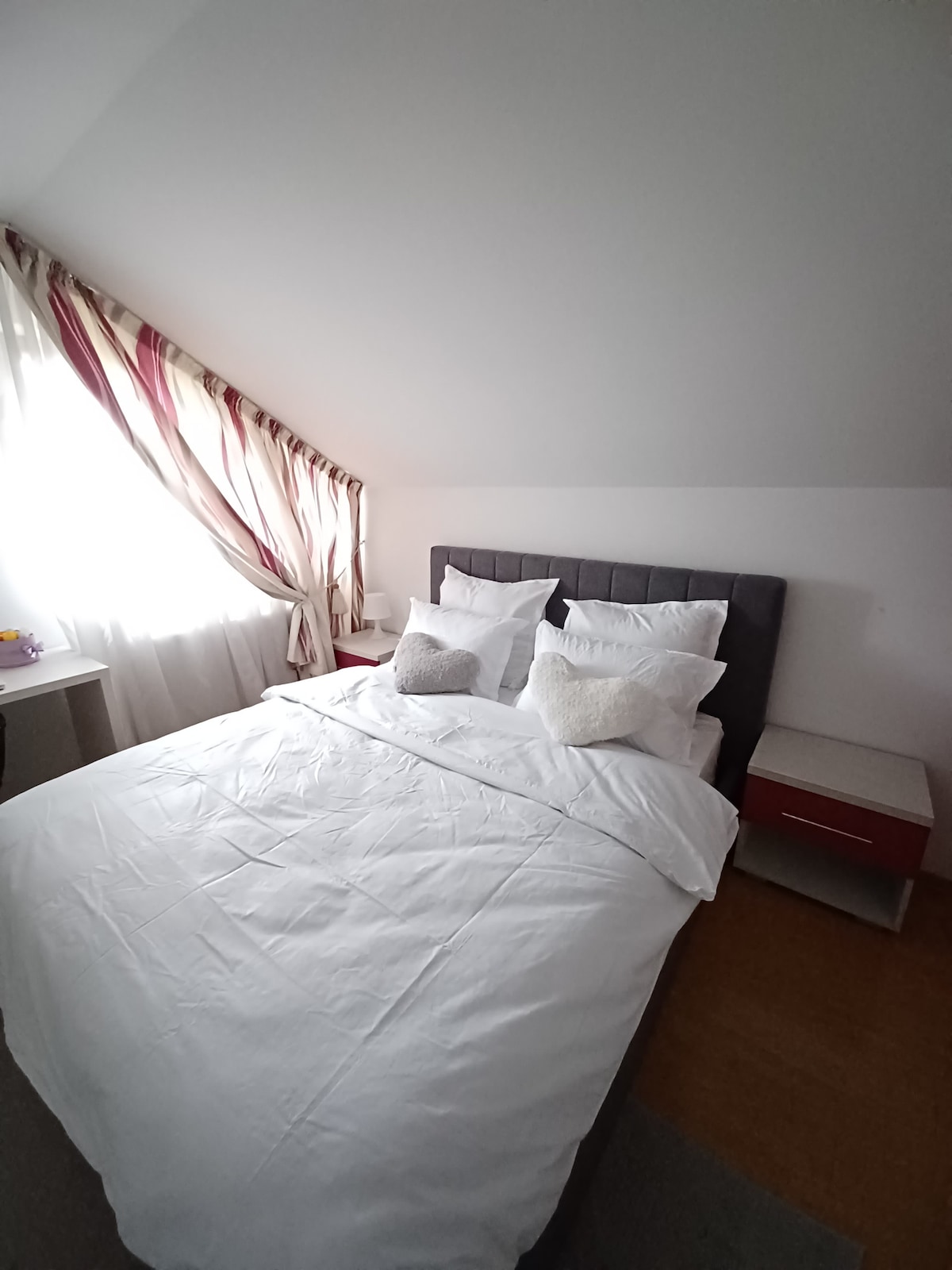 A cute and cosy house in the heart of old town of Brasov. From the bedroom you can enjoy the view over the castle like church, the little garden with many flowers and trees. In a few minutes you can get to the wild forest of nature reserve Mount Tampa or the city center for its attractions and restaurants, cafes & bistros. It is located on a narrow street next to the first romanian school, with entrance through the private courtyard shared with us, your hosts, living in the next door house.
