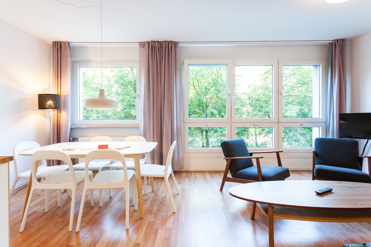 This comfortable studio offers 26 sqm of space. Ideal for up to three people, its double bed (160x200 or 180x200), single bed (90x200), and modern bathroom with shower make this stay a perfect way to experience Berlin. It also offers a kitchenette and a dining table, so you’ll have everything you need for maximum comfort and minimal stress.