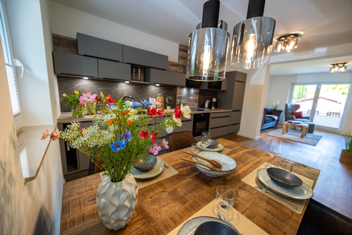 The large holiday flat in our house in Peetzig am See. Quietly located in the wonderful nature of the Uckermark. The bathing area of the Peetzigsee is 200 metres away, the garden of the house can be used completely. Bicycles, fire bowl, SUP board, natural pool, barbecue and fireplace are available free of charge. For the hot tub and sauna we charge a one-time usage fee/flat rate of 20 €. You may share the garden with guests of the other apartment.