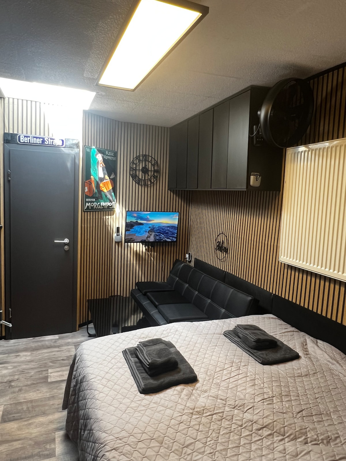 Am ruhigen Rand Berlins, nahe Flughafen BER, jedoch 40min zum Alexanderplatz, befindet sich unser gemütlichen Mini-Appartment im Souterrain mit seperatem Hauseingang, Küche und Bad. Gartennutzung ist möglich. Eingang hat eigene Adress: Gerosteig no 21. On the quiet edge of Berlin, near AIRPORT BER, but 40min to Alexanderplatz, is our cozy mini-apartment in the basement with separate house entrance, kitchen and bathroom. Garden use is possible. Entrance has its own address: Gerosteig no 21.