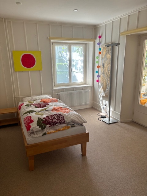 Die Wohnung ist ideal geeignet für 2 Erwachsene und 1 Kind ev. ein 2. Kind (ab 3 Jahre - ungesichertes Stiegenhaus). Die Wohnung befindet sich im Obergeschoss unseres Einfamilienhauses und wird über die gemeinsame Haustüre und das Stiegenhaus erreicht. Für Menschen mit mehr als 185 cm Körpergröße könnten die Türhöhen und die Dachschräge ein Hindernis sein. Wir wohnen in ruhiger Lage.