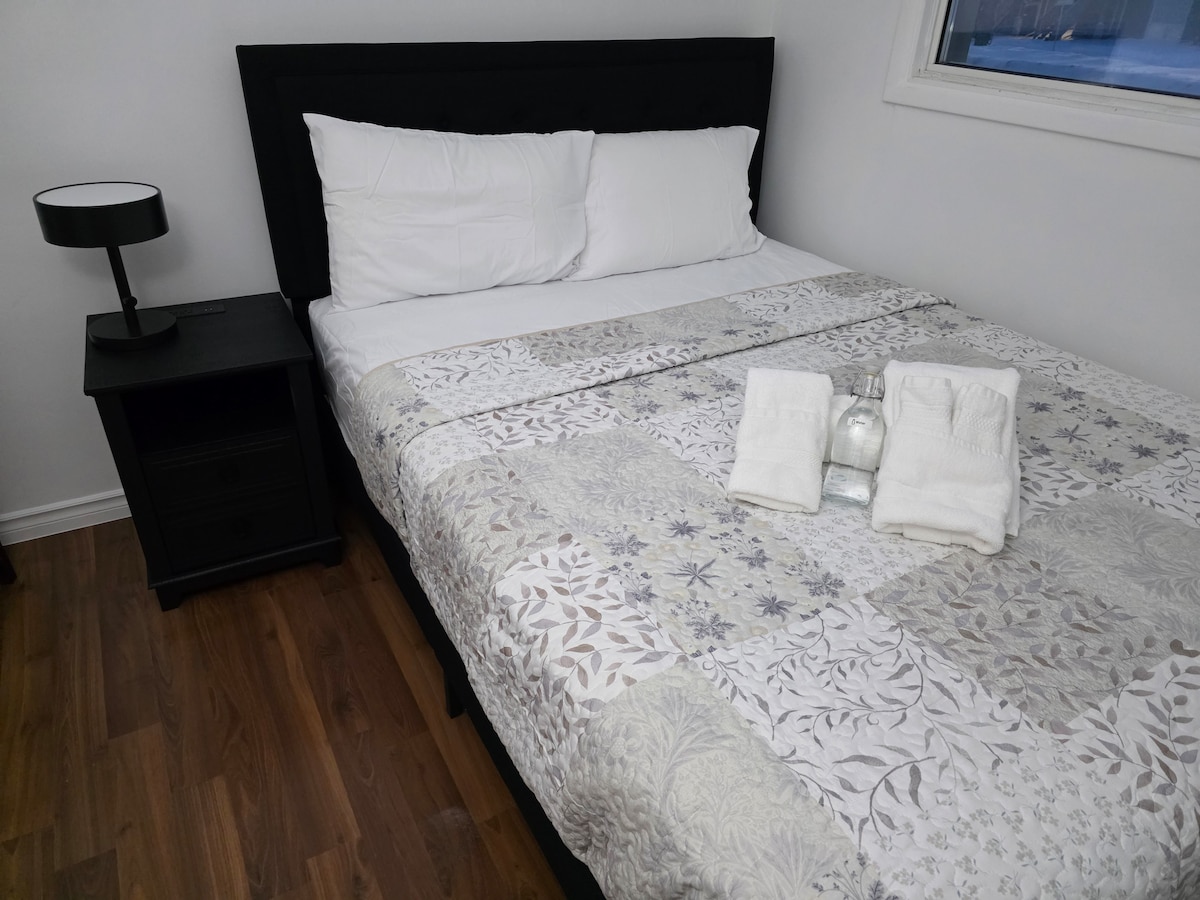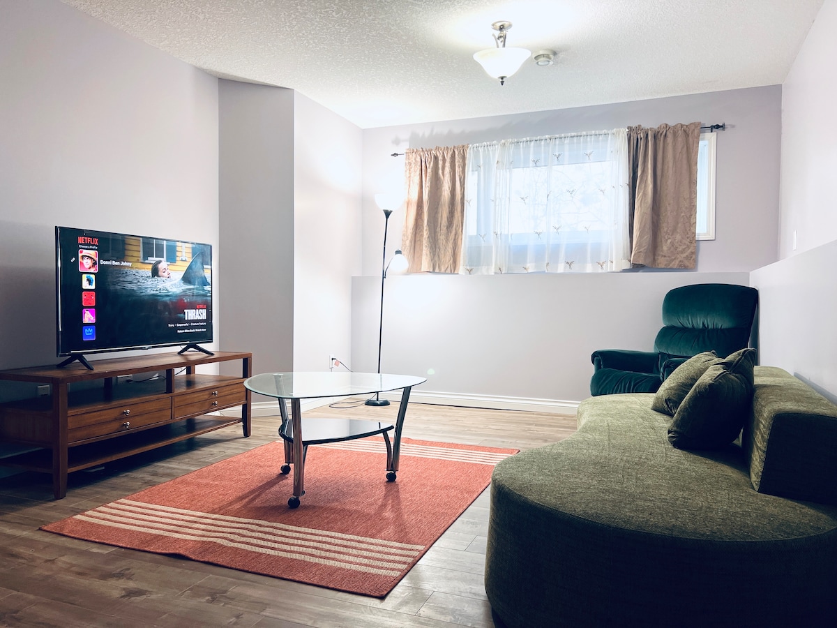 This beautifully designed 2-bedroom basement suite offers a perfect blend of style and comfort. Bedrooms with plush queen beds, a cozy living area with a flat-screen TV, and a fully equipped kitchen, ideal for families, friends, or business travelers. Enjoy the full bathroom, in-suite laundry, high-speed Wi-Fi, and private entrance with dedicated parking. Located in a safe neighborhood with easy access to shopping and dining, this suite has everything you need for a relaxing, hassle-free stay.