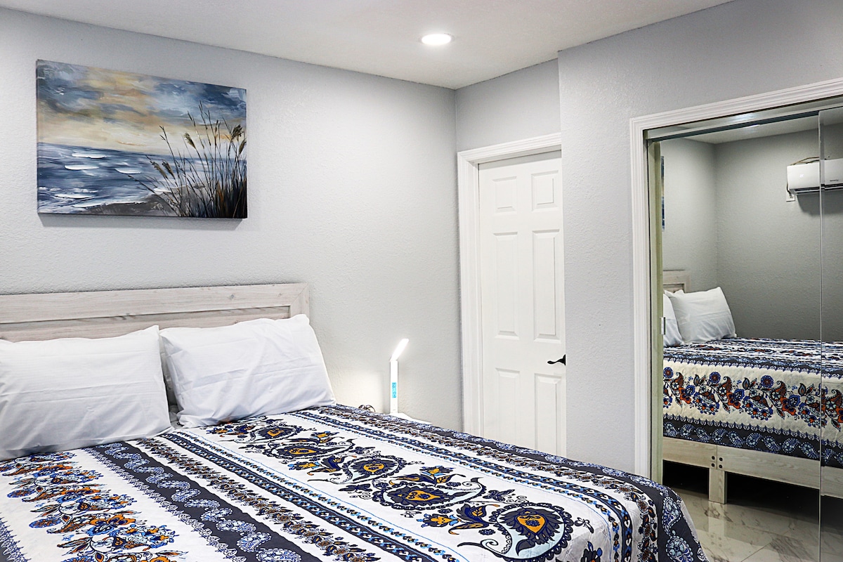 Studio apartment: Sleeps 3. Near major highways, beaches, Busch Gardens, & universities. Hospitals and Tampa airport within 30 minutes. This studio boasts a queen bed, a custom-made twin-size Murphy bed, a kitchenette, a table/workstation and a private outdoor patio. Designated parking and keypad entry.