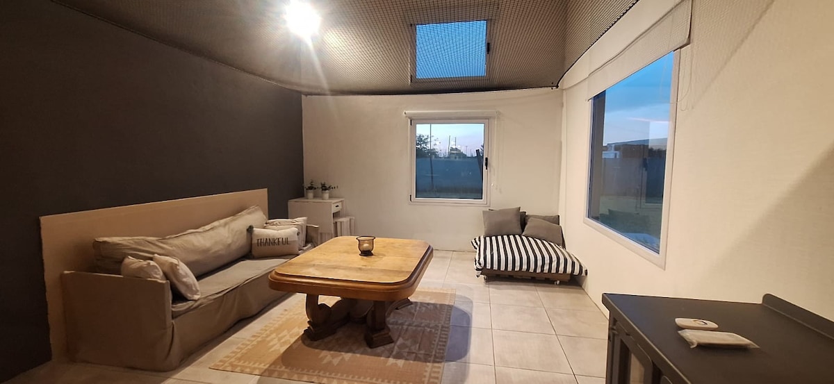 Parque de 7000 m2 donde se pueden apreciar hermosos atardeceres acompañado por los tradicionales cantos de las Calandrias. Cuenta además con piscina, cancha de fútbol 7, fútbol-tenis, voley, metegol, mesa de ping pong y juegos infantiles