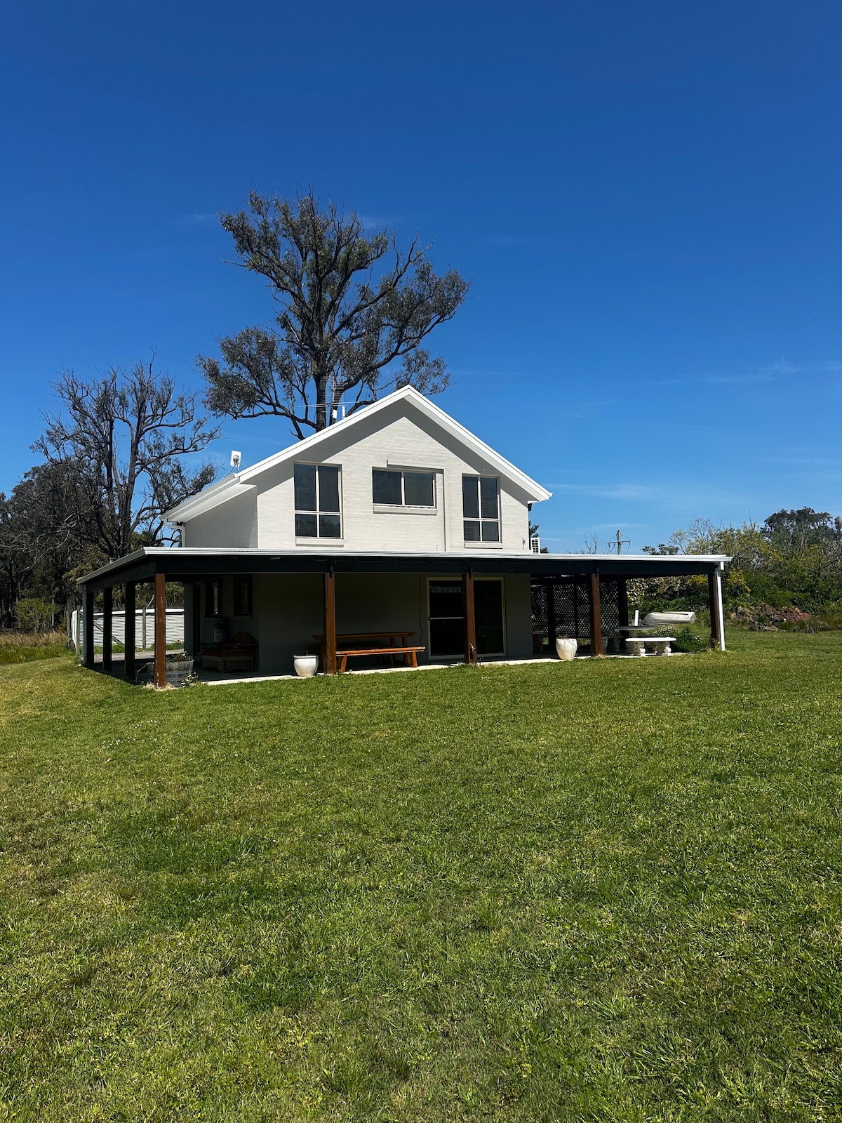 A very homely country cottage - very warm and inviting. A beautiful 40 acre country setting with a verandah on three sides of the cottage which is totally yours. You will see cows, geese and if you go for a walk - ducks, chickens and further on a 10-15 minute walk to the beautiful Paterson River. You will see the River in our photos. Also there are so many attractions in the surrounding area.