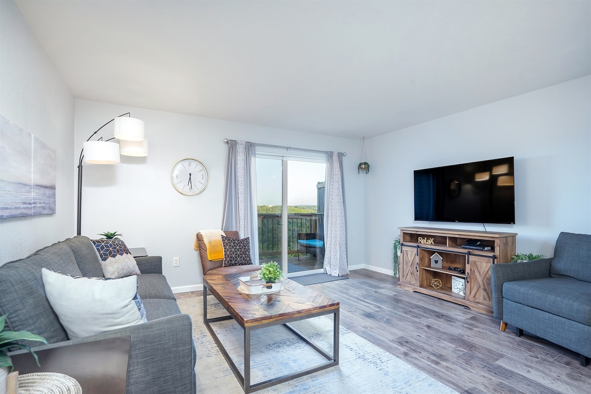 Enjoy Branson and relax in this REMODELED luxury condo. WALK IN LEVEL AND NO STEPS. Parking is directly in front . Elegance and luxury awaits you in this stunning condo that provides you with beautiful decor, furnishings, upscale amenities, and the perfect location in the Heart of Branson. Centrally located in Branson, yet tucked away among the trees near the Thousand Hills Golf Course. Just minutes away from all the attractions Branson has to offer.