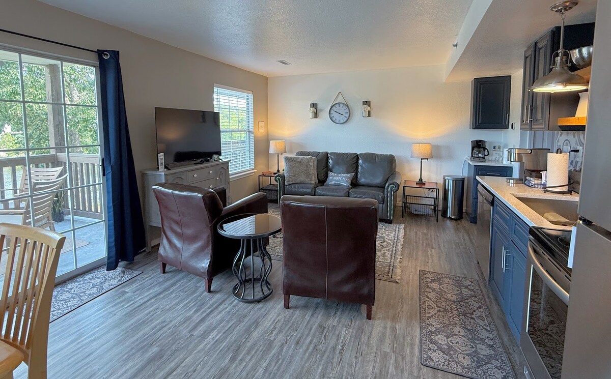Welcome to Chasing Vineyards, a brand new fully loaded condo with unforgettable views. Favorite Amenities: 🏊♂️ 2 Outdoor Pools and BBQ grills 🕹️ PacMan Arcade ☕️ Coffee bar ⛳️ Putting Green Centrally located to all of Branson's entertainment: -4 miles to Silver Dollar City -7 miles to the Branson Strip -5 miles to Table Rock State Park -6 miles to Dolly Parton's Stampede -3 miles to Moonshine Beach -7 miles to Indian Point Marina (boat rentals available) Your perfect getaway awaits!
