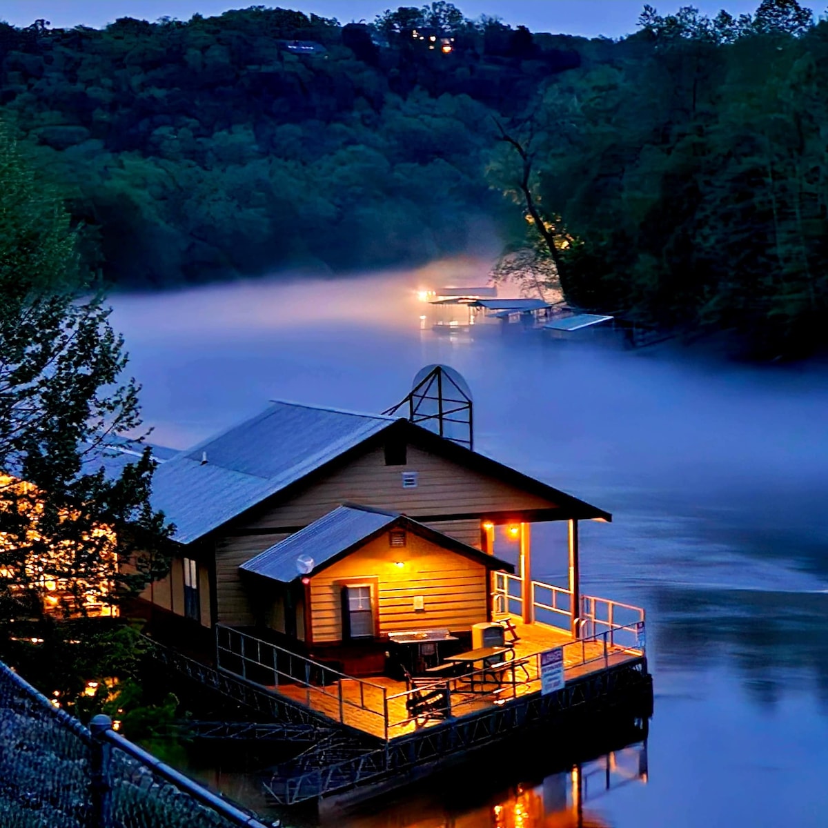 Pet-friendly lake stay just 2 traffic free miles from Silver Dollar City and 1 mile from Indian Point Marina! The GLO Getaway features a cozy king bed, fireplace, full kitchen, and private balcony. Walking trail nearby leads to a peaceful lake cove. Kayak and paddleboard rentals available, plus discounted GloRide experiences. Quiet location with boat parking, close to food, live music, and 15 to 20 min drive to Branson attractions. Visit ExploreIndianPoint for more info on GloRides.