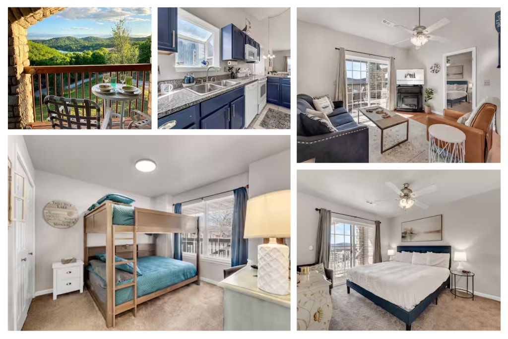 Welcome to Rolling Hills Condo — Your Escape to Tranquility and Relaxation! This spacious 2-bedroom penthouse in Indian Point offers breathtaking views of Table Rock Lake. Located in a quiet community, just minutes from Branson's best attractions, this condo blends comfort and convenience-easy access to all the excitement, with the option to unwind in a peaceful setting. This condo features a king, queen, twin bunk beds, and a pull-out sofa for ample space. Perfect for families or friends!