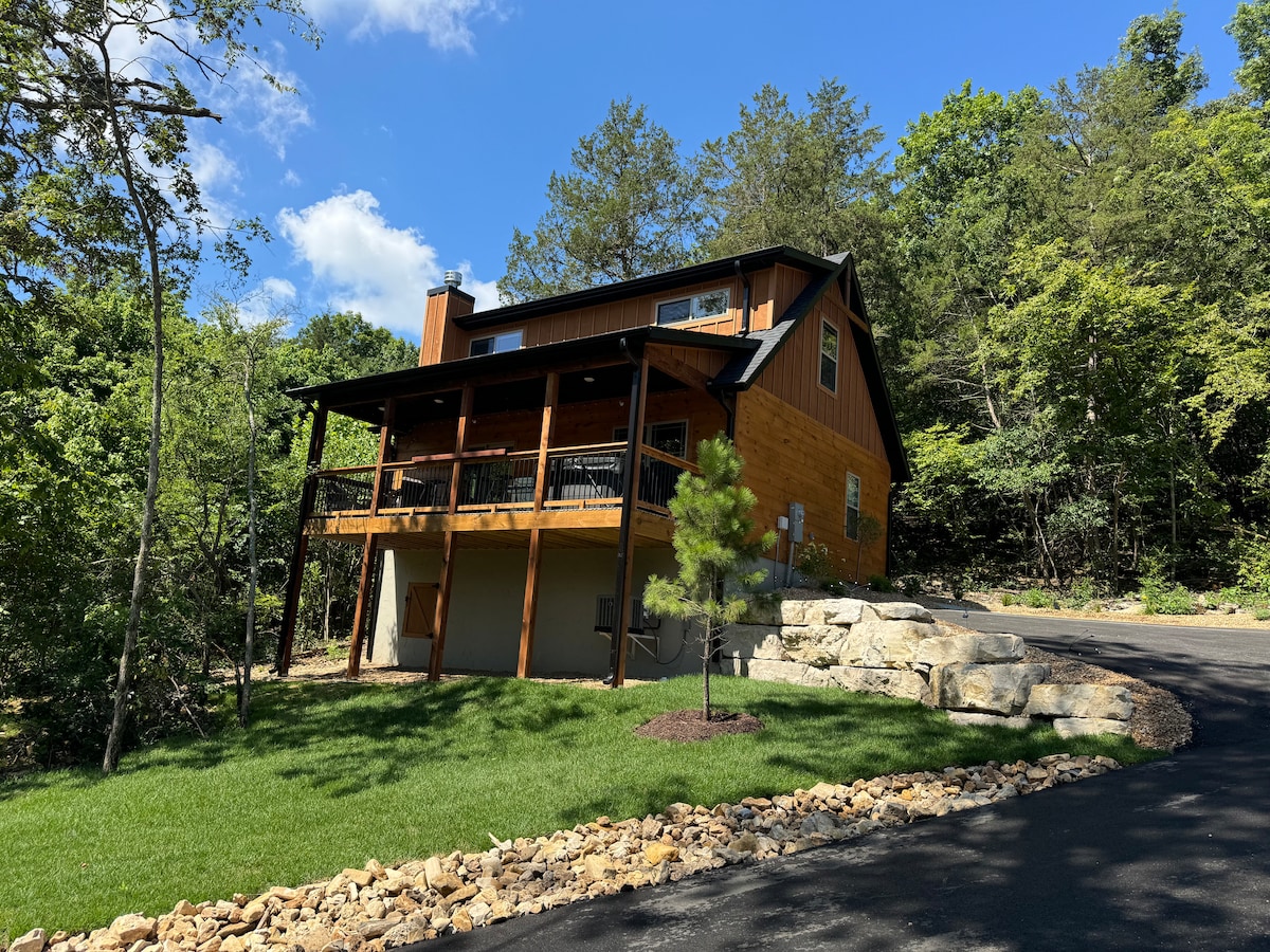 Welcome to The Tree + House at Indian Point! This custom luxury treehouse was built with comfort and relaxation in mind. Perfect for up to four guests, it’s surrounded by forest and filled with natural light from floor-to-ceiling windows that showcase stunning views of Table Rock Lake. You’ll feel tucked away in your own private retreat, yet still be just minutes from the water and Silver Dollar City. It’s the ideal mix of peaceful nature and modern style.