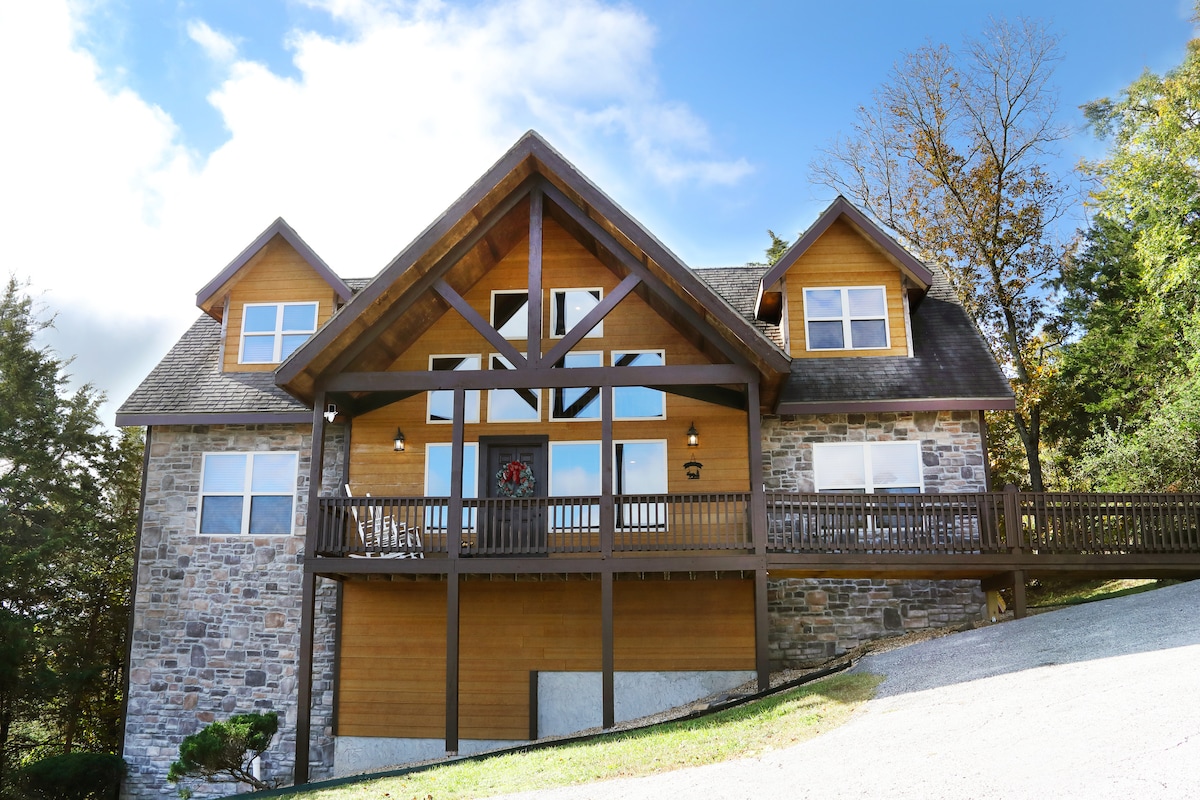Trophy Buck is a beautiful vacation home located in the Ozarks. It features 3 bedrooms, 2 bathrooms, and a large loft, making it perfect for families. The cabin has a fully equipped kitchen, full laundry, seasonal wood-burning fireplace, private hot tub, and propane grill. The cabin also has Smart HDTVs in all bedrooms and both living areas. The loft is perfect for younger ones and has a bunk room and a second bathroom. Guests can enjoy nature and the Ozarks forest from any of the three decks!
