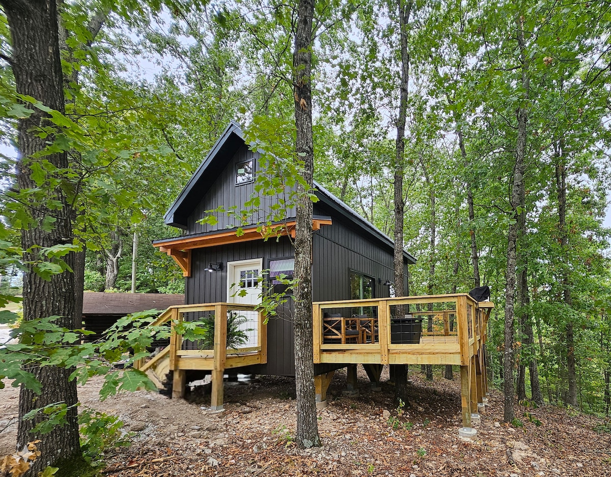 Nestled in the heart of nature, this charming tiny cabin at The Overlook Cabins on Table Rock Lake offers a cozy retreat for those seeking tranquility and adventure. Perfect for a romantic getaway or a solo escape, this modern yet rustic cabin features all the essentials for a peaceful stay, including a private deck overlooking the lush surroundings. Experience the serenity of the Ozarks while being just a short drive from the lake and nearby attractions.