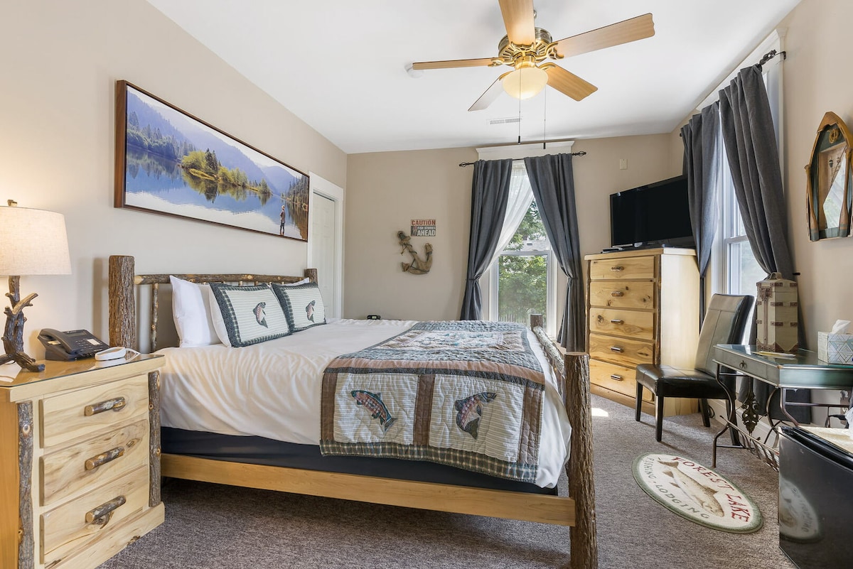 The Fisherman’s Cove, a King room with private bath on the second-floor room of the Historic Branson Hotel. Bait, tackle, handcrafted stick bed, rods, reels, and a fully stocked tackle box envelopes guests into a true Fisherman’s Cove experience. Located in Historic Downtown Branson, you will be within walking distance to many shopping and dining options, and just a few minutes’ drive to the famous “76 Strip”. Your fisherman's paradise awaits! This is an Adults Only hotel.